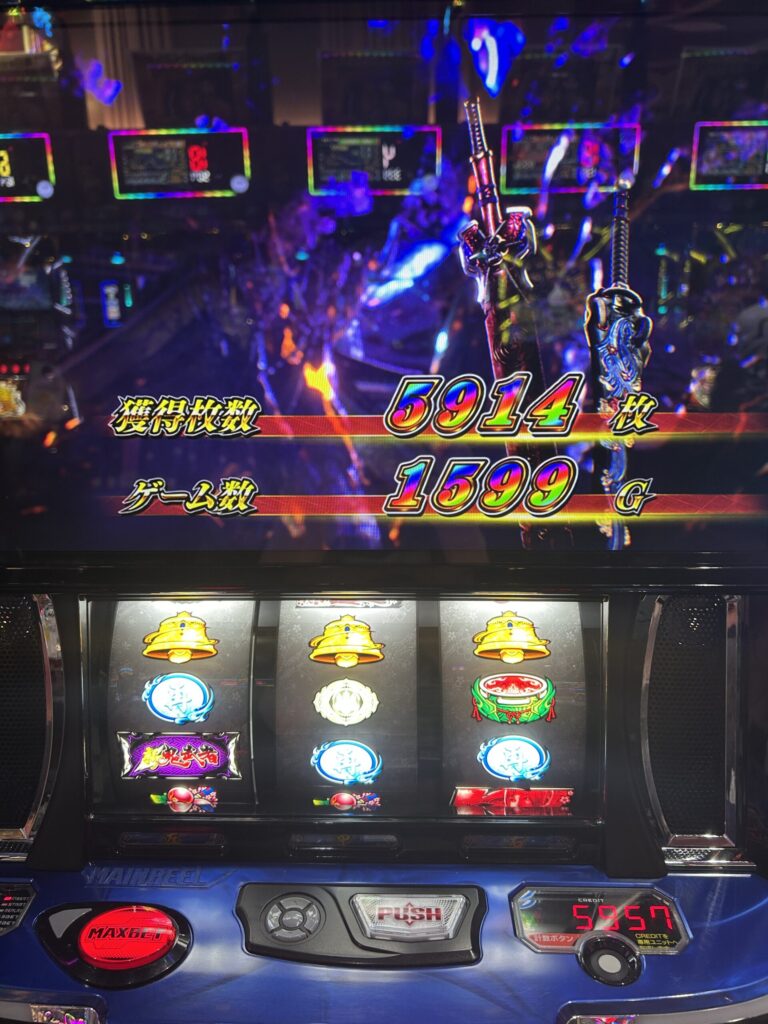 2度目の5000枚超獲得。その後時間も9時過ぎたところで、1周期目抜けでやめ。