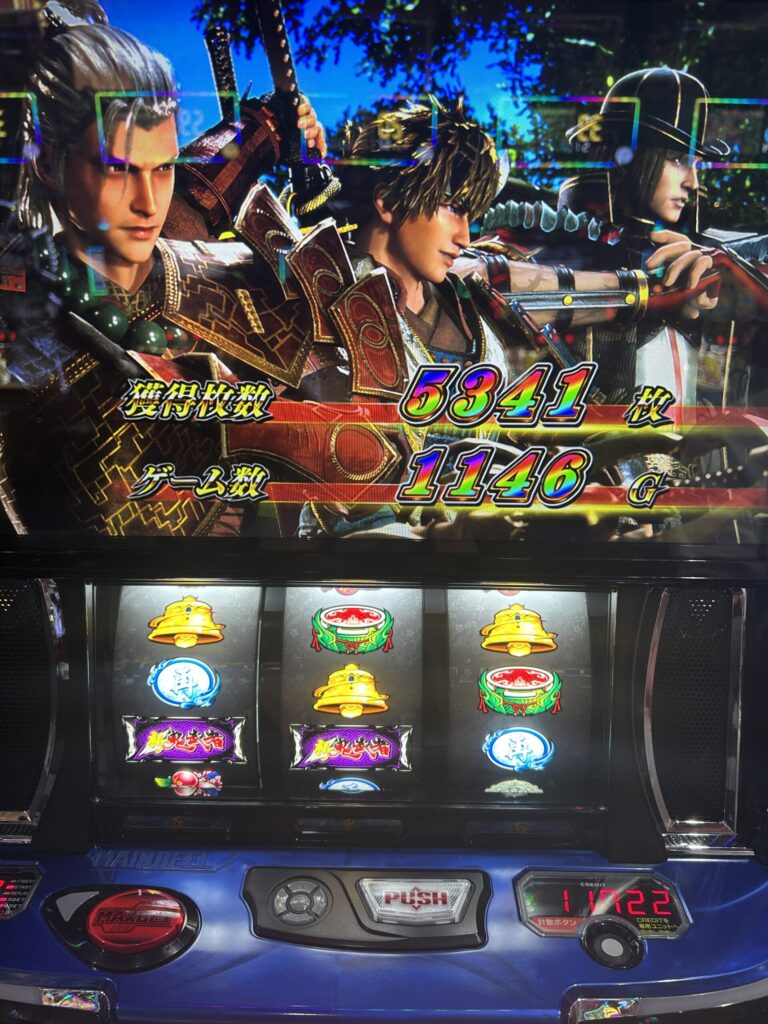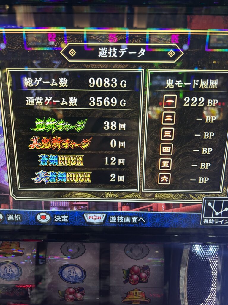12月最初の休日に、いつもの6がつく日が強いお店で設定狙い。抽選番号はよくはなかったが、新鬼武者3が取れました。抽選番号がよくないのに取れるという事は、あまり人気が無いのでしょうか。個人的には結構好きな機種なんですが。