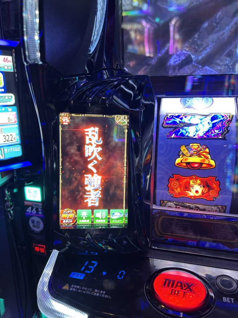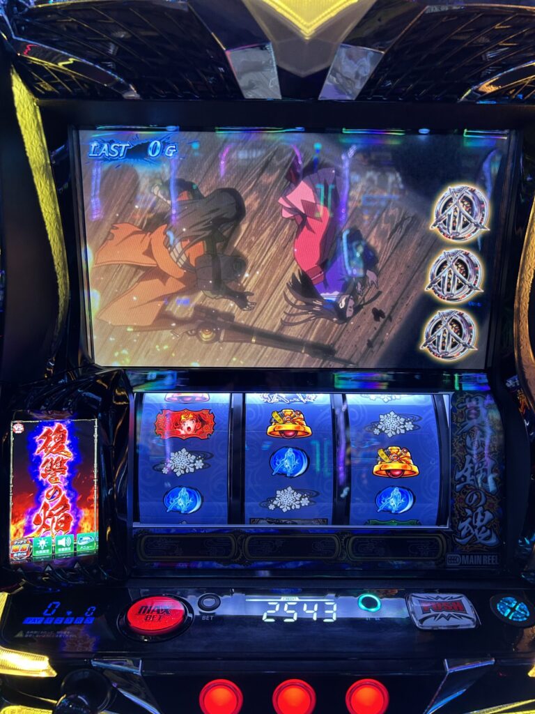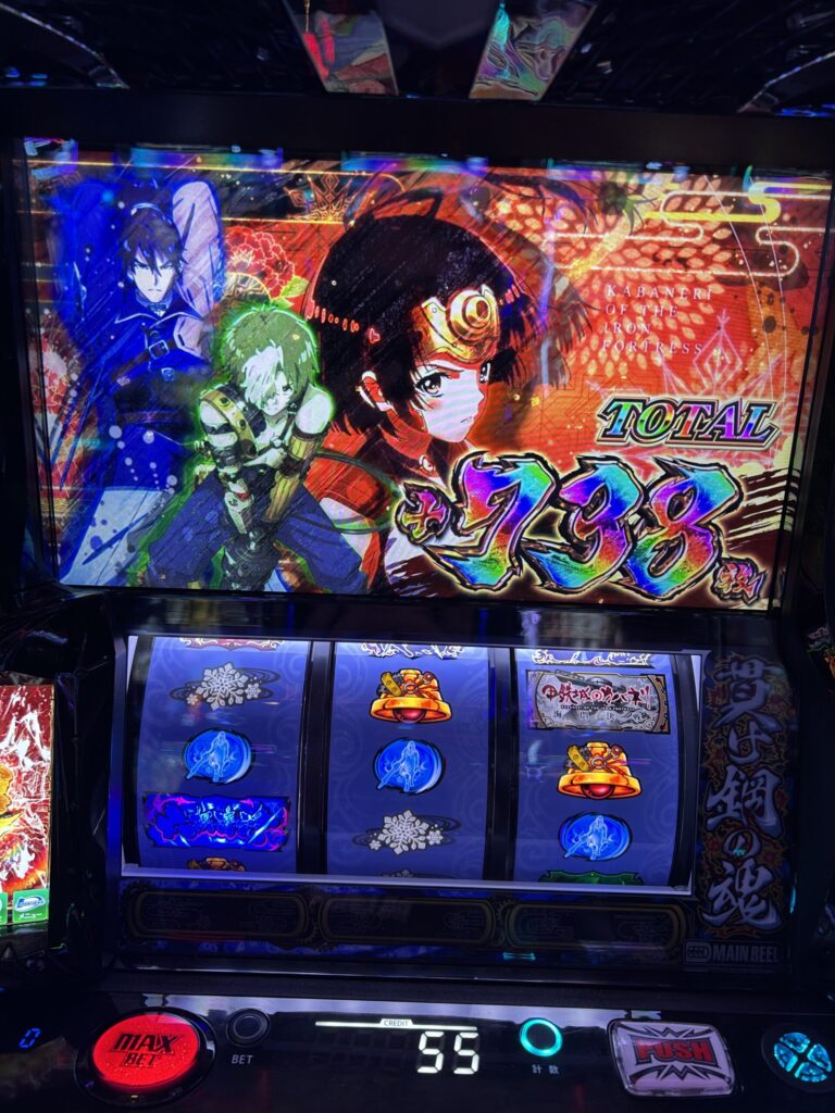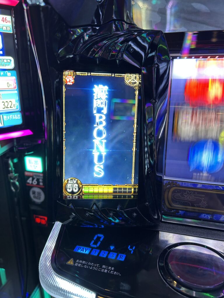 この日は導入間もない「甲鉄城のカバネリ 海門決戦」を狙い台にしていったのですが、抽選番号次第と思っていましたら、抽選番号がかなり良番で前から6人目くらい。設置台数より早い番号なんで台が取れるのは確定。後は、設定判別要素がこの時点ではあまり出ていないので、一応下段ベルは数えながら、展開次第では撤退も視野に入れつつ打ってきます。